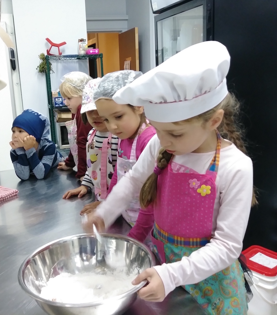 Depuis septembre, les jardiniers en herbe jouent aussi aux apprentis cuisiniers. Stéphane Lavoie anime des cours de cuisine pour 4 groupes d’élèves âgés de 5-6 ans, 7-8 ans, 9-10 ans et 11-12 ans. Après l’école, il retrouve les enfants et en profite pour les sensibiliser à des pratiques d’achats éclairées lors du passage à l’épicerie. Les plus expérimentés cuisineront à la fin du programme un repas complet en formule Restaurant d’un jour pour leurs parents et les habitants du quartier.